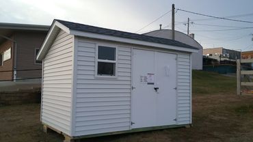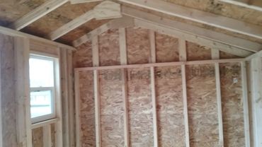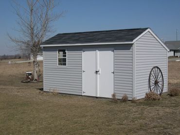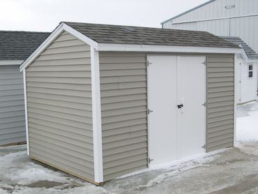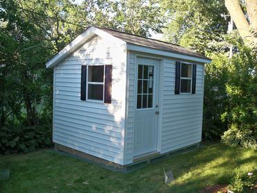 * 5/12 pitched roof with the peak at 8' on 8' wide, 9' on 10' wide buildings